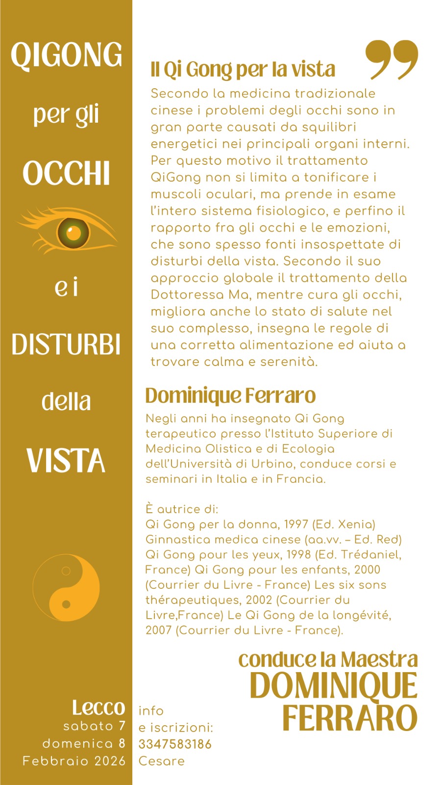 - Meditazione: la sequenza di movimenti lavora in profondità sullo shen. Al fine di favorirne l’assimilazione saranno quindi proposti dei momenti di meditazione specifici.